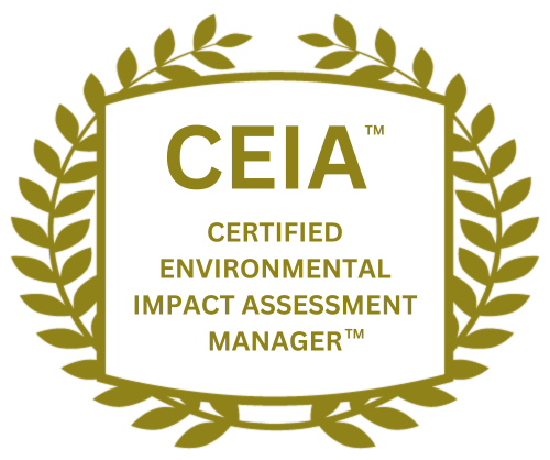 Assessment Manager (CEIA™) designation. This distinguished certification will validate your expertise in managing major projects the EIA process efficiently while maintaining regulatory compliance and stakeholder confidence. In addition, this industry-recognized certification holds lifelong validity and will demonstrate your professional credibility and commitment to excellence in environmental assessment and regulatory compliance.